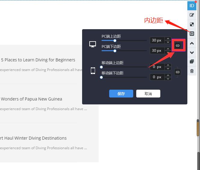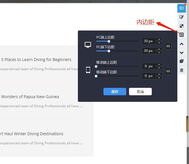 5.上、下边距:调整区块的上、下边距;