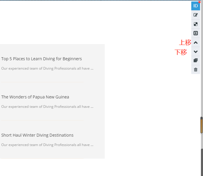 6.上移、下移:在同一个页面中,可以将区块的位置进行上、下移动;