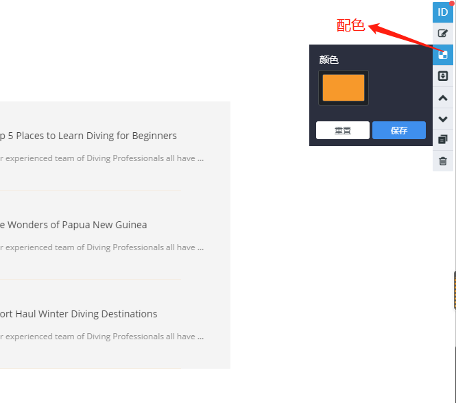 4.配色:因为区块自带了设计时的配色,使用区块时可以根据您的需要更改为更合适的颜色;